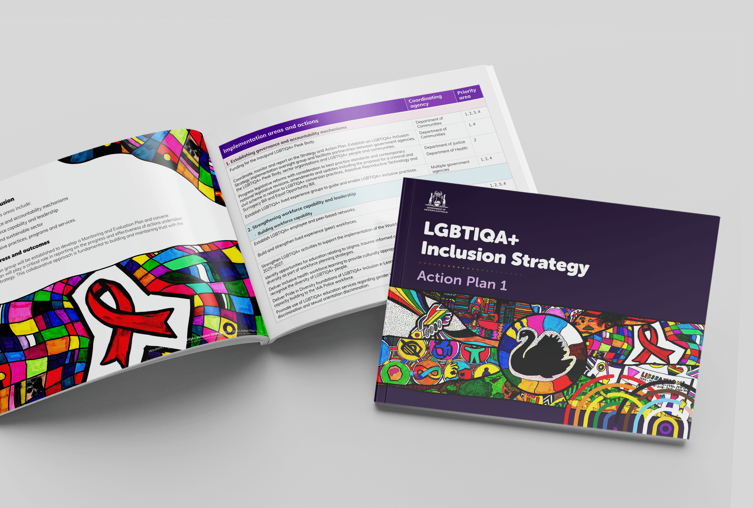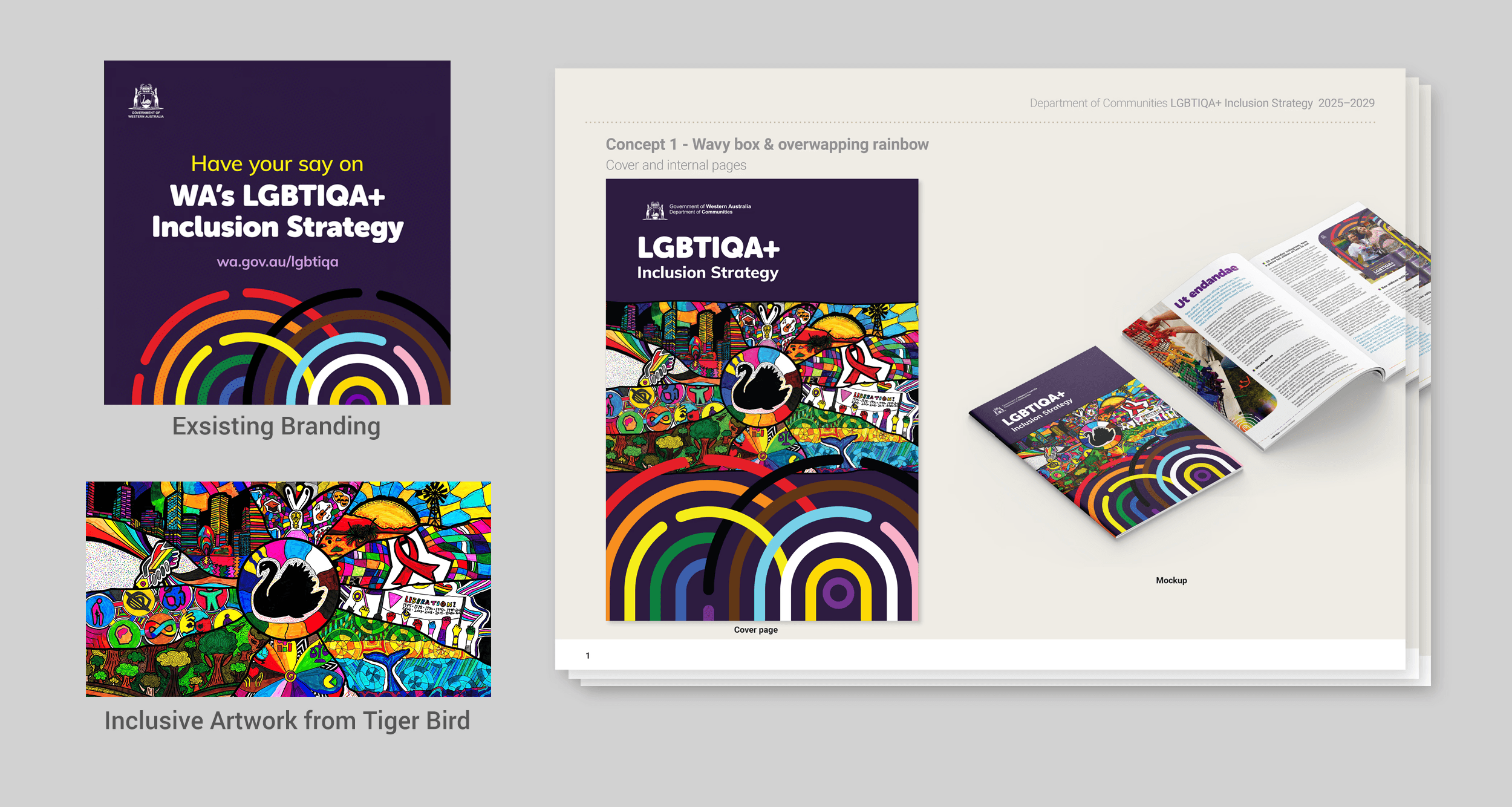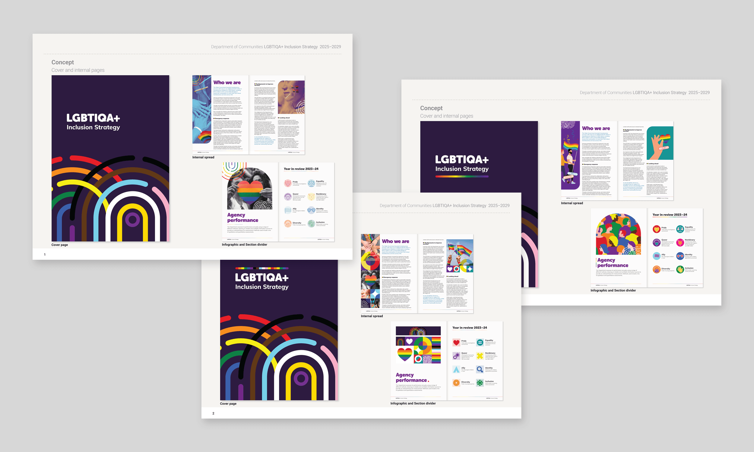 I led the design of the State’s first LGBTIQA+ Inclusion Strategy, creating an 80-page report and digital assets for Cabinet presentation. My work focused on representing community values through inclusive visual identity and clear communication for a diverse audience.